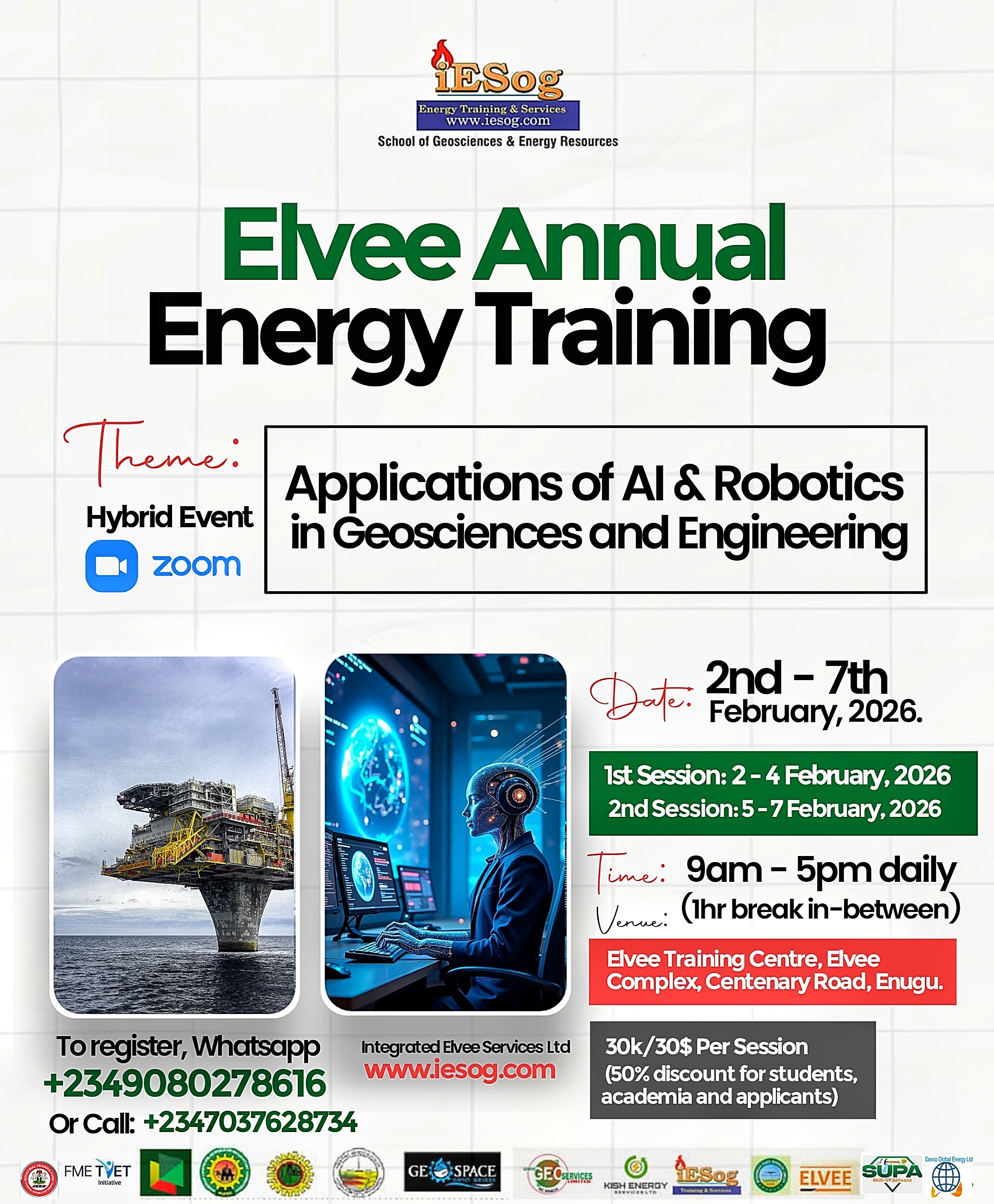 Elvee School of Geoscience and Mining Training: 1 December to 5 December 2025 / Physical: 9am to 12noon & Virtual: 2pm to 5pm daily (Zoom: WAT / UTC+1)
