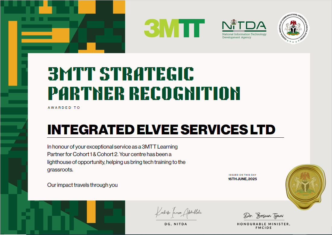 We at the INTEGRATED ELVEE SERVICES LTD are deeply honoured to receive the Strategic Partner Award from the Federal Ministry of Communications, Innovation and Digital Economy (FMCIDE) and the National Information Technology Development Agency (NITDA). This recognition affirms our commitment to advancing digital skills development, innovation, and technology-driven empowerment, and their applications in he E&P Industry. We appreciate the trust placed in us and remain dedicated to supporting Nigeria’s digital transformation agenda through impactful collaboration and sustainable capacity building initiatives cutting across the Exploration and Production sector.